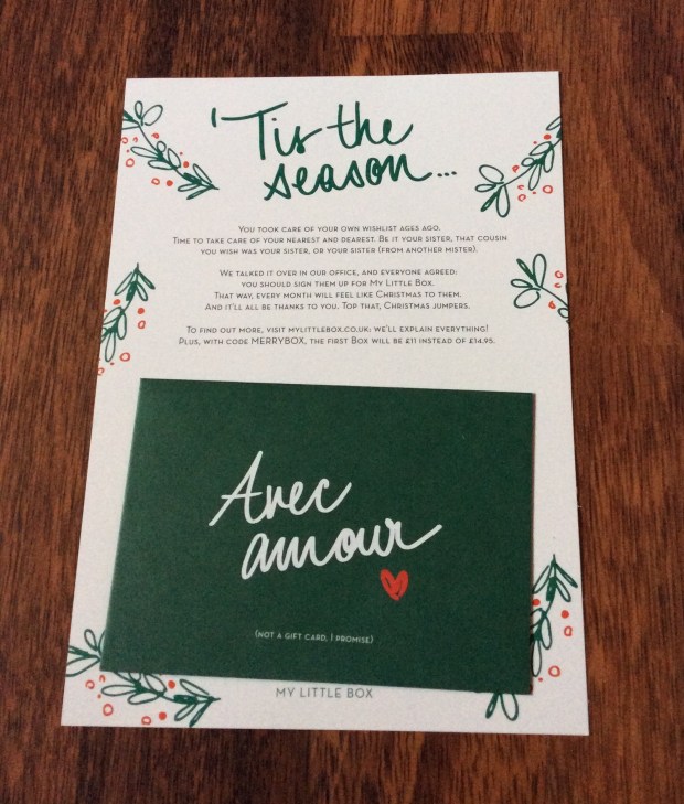 I received my November My Little Box last Friday – one of my favourite monthly subscription boxes – it is a Parisian based monthly subscription box which costs £14.95 (inclusive of p&p) per month. This month’s theme is ‘Goodnight’ and love the way the box, booklets, packaging is all coordinated in line with the monthly theme .