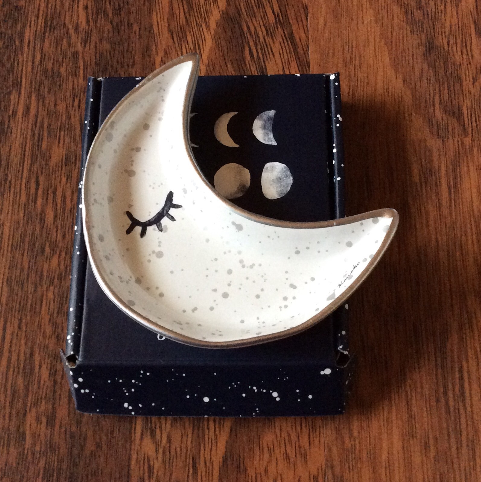 Ornamental Jewellery Dish in Shape of the Crescent Moon (no value given) –Comes in a beautiful presentation box – White & Silver Print – perfect for a few jewellery pieces – I understand it is for beside your bed in line with this months theme but would also be perfect to leave beside the kitchen sink – a nice addition to this months box;
