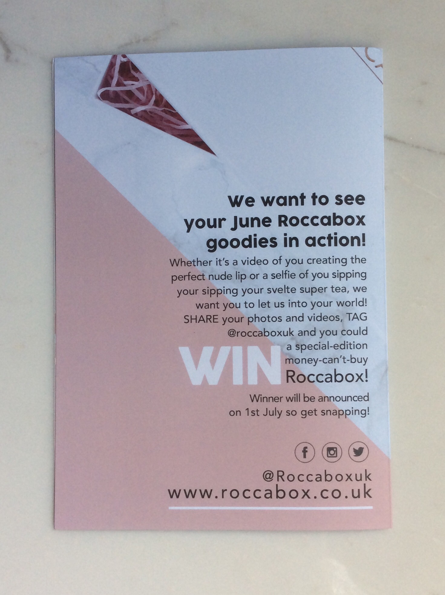 Details also included on back of information card of how to win a special edition Roccabox (photo / details below).