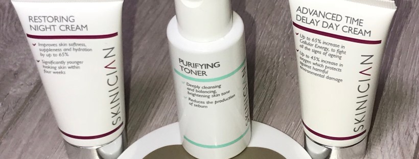 One brand I discovered this way was the Skinician skin care brand and as I attended a lot of events in 2017 I was v lucky that I received a 50ml Purifying Toner and 30mls of both the Advanced Time Delay Day Cream and Restoring Night Cream from their range in different goodie bags which was a great way to try a number of their products together over a period of time .